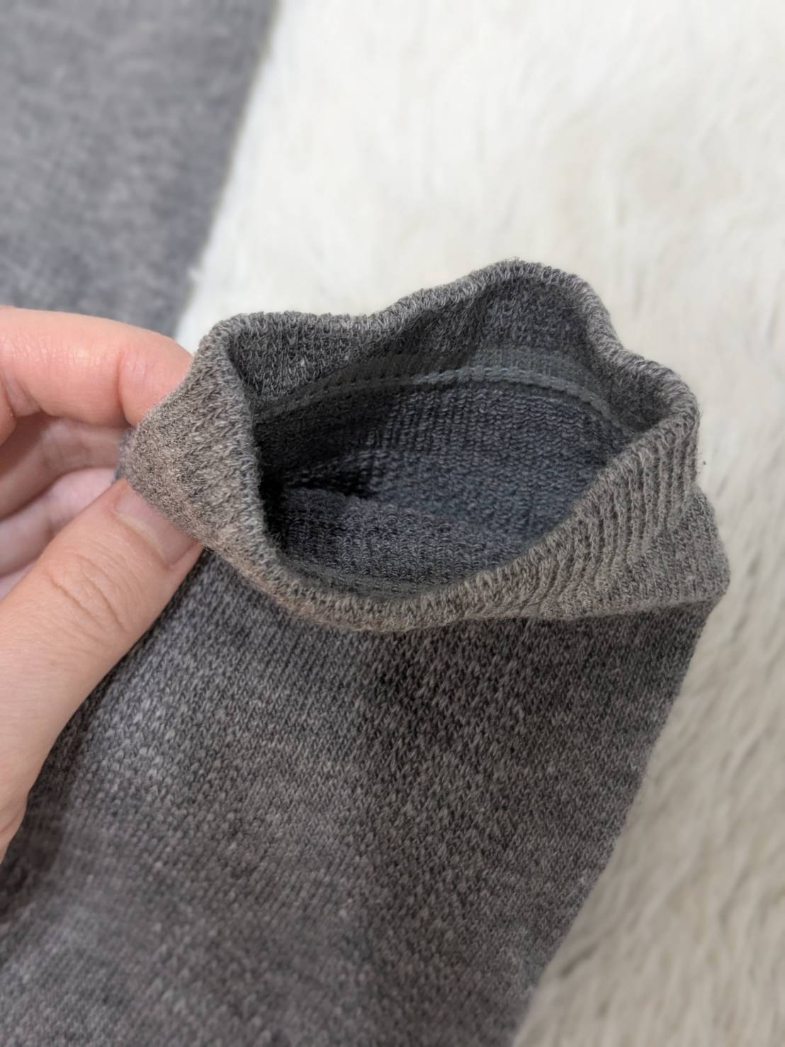 履き口はゆったりとしたゴム仕様のため、長時間の着用でも跡がつきにくいです。